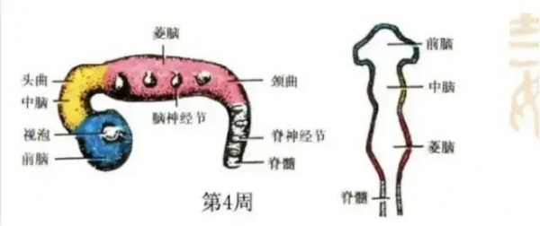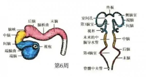 但仅仅 1 周之后,就会形成端脑、间脑、中脑、后脑、末脑。