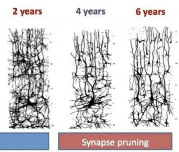 两三岁之前,记忆信息来者不拒,会形成十分纷乱的神经网络。