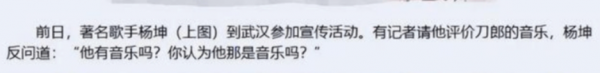 当年那英吐槽刀郎的歌曲根本就没有什么艺术含量,称不上是艺术作品,当时杨坤等人也发表过相似的言论,这些言论一度引起了网友们的广大关注。