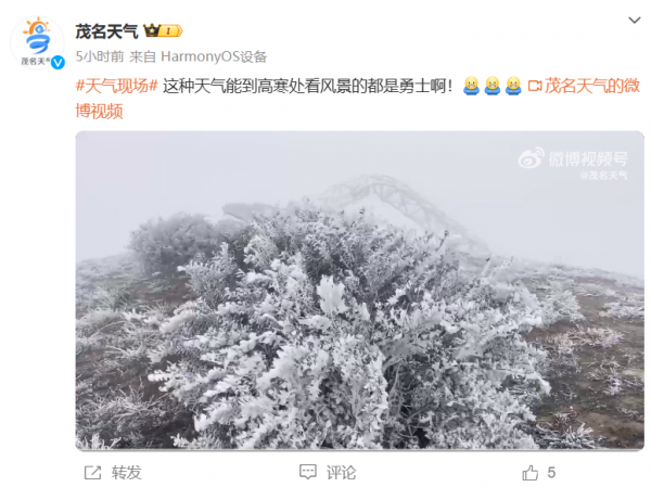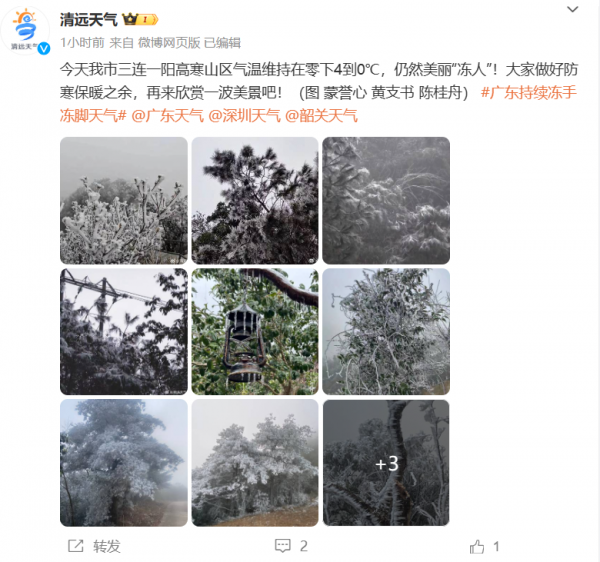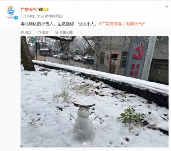 今天广东多地下起了雪,网友评论称"终于不用出省赏雪了"