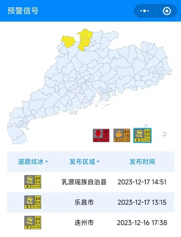 23日,南部沿海市县晴到多云,其余市县晴间多云。最低气温:粤北市县零下1℃~3℃, 高寒山区零下6℃~零下1℃; 南部沿海市县7~11℃,其余市县3~6℃,中北部市县有冰(霜)冻。
