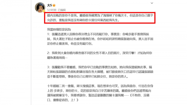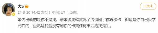 一切源于大S不久前在社交平台上发文,狠狠将汪小菲在舆论场上按了一通。她直指汪小菲在自己怀孕期间不仅家暴,还曾出轨红杏。一连串的狠话当头棒喝,将汪小菲彻底"按在了地上摩擦"。