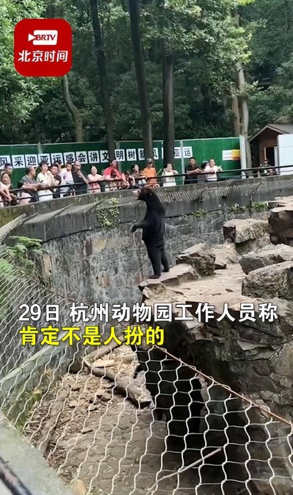 29日,杭州动物园工作人员称,肯定不是人扮的,夏天高温人套个皮毛也坚持不了。"那肯定是实在的动物啊,那肯定不是人扮的。我们这边是国营的,不会出现这种情况。大夏天的温度40度,你再套个皮毛的话,人肯定坚持不了几分钟就要倒下了。"