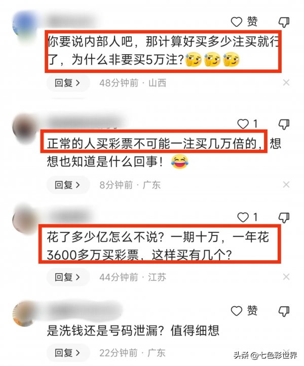 这注超级大奖经过部分自媒体的报道后,网友们在评论区也是"吵翻了天",各种质疑的声音愈演愈烈,那么我们来看看网友们到底在质疑什么?