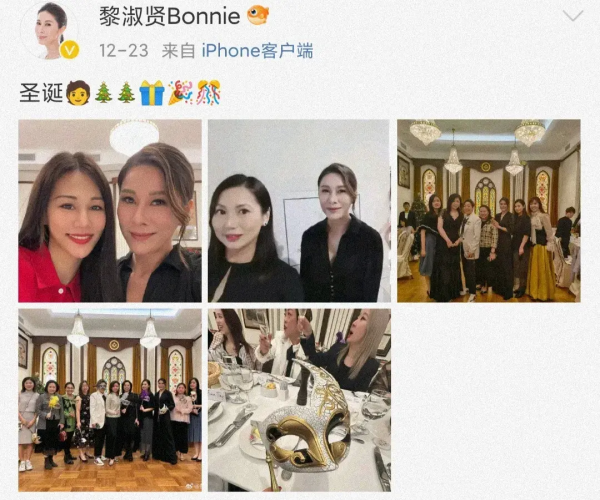 12月23日,黎淑贤还在社交平台更新动态,晒出与众多好友的合影,一起庆祝圣诞节,照片中,黎淑贤面带笑容,看起来状态非常好。