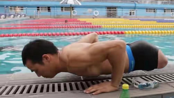 没有双腿的杜亚甫通过努力学会了游泳,后来还加入河南省残疾人游泳队,连续在两届河南省残运会蛙泳项目中获得4枚银牌。