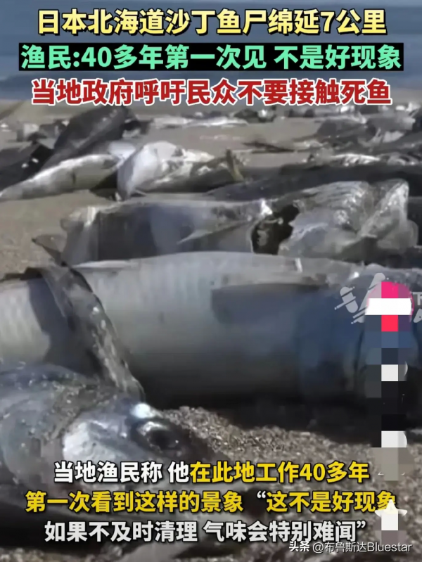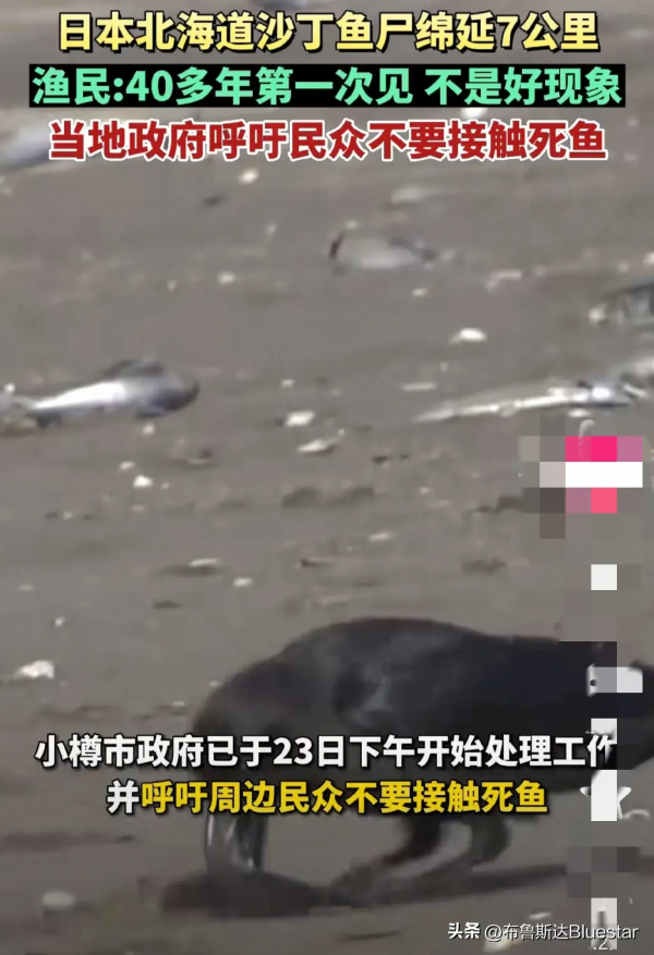 日本北海道海岸再现大量死亡沙丁鱼:范围绵延7公里,已开始腐烂
