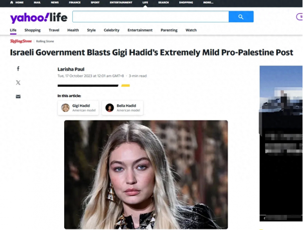 为什么以色列政府对美国超级女模吉吉·哈迪德在社交媒体上发布的支持巴勒斯坦的信息如此上心呢?原来吉吉·哈迪德还有两个不为人知的特殊身份!