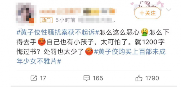这样的处罚结果,许多网友纷纷表示不满,认为像黄子佼这种具有病态心理的人,应该予以更重的处罚,才能有效减轻受害人的心理阴影。
