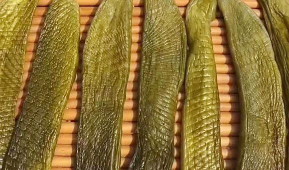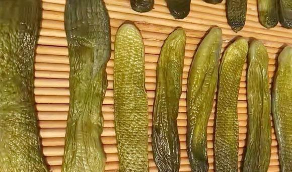 第五步:最后一步,我们将压过的黄瓜,放到阳光充足的地方,晾晒一天,晒到如下图所示的颜色就可以了,这样晒过的黄瓜,不仅更容易保存,口感也更好,装入袋中冰箱冷冻存起来一年四季都不会坏,平时用它炒个肉,拌个咸菜吃,那味道老美味了。现在正是这种小黄瓜上市的季节,没吃过这种做法的朋友建议都买来做上一些。做出来的味道绝对不会让你失望。