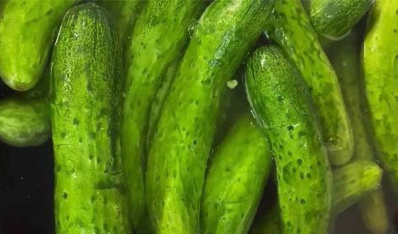 新鲜的小黄瓜,食用盐,清水,