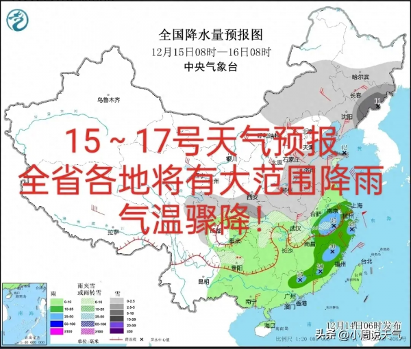 2023年12月15日福建省天气预报:雨雨雨!冷冷冷!福建降温且下雨