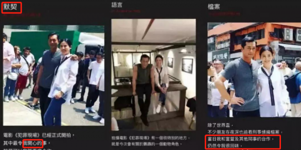时隔多年再合作时,古天乐将两人的合照上传到网上,关键词是"默契""开心"和"宣萱"。