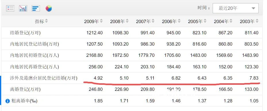 注意这数据里不但有与国外结婚的,还有与港澳台结婚的。