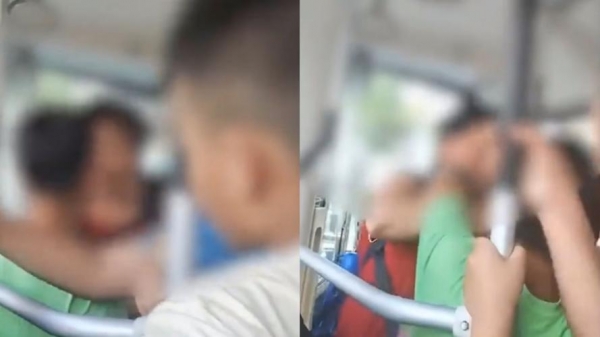 近日,网上一段23秒视频显示,拥挤的公交车上站着许多小学生,一名穿红色连衣裙的女子与一名男孩发生冲突时称,"你还想举拳头,你们老师教你的吗?"一番争执后,男孩骂道,"傻X啊。"这时女子愤怒地说,"再骂一句"并扇了男孩一巴掌,两人随即发生肢体冲突。
