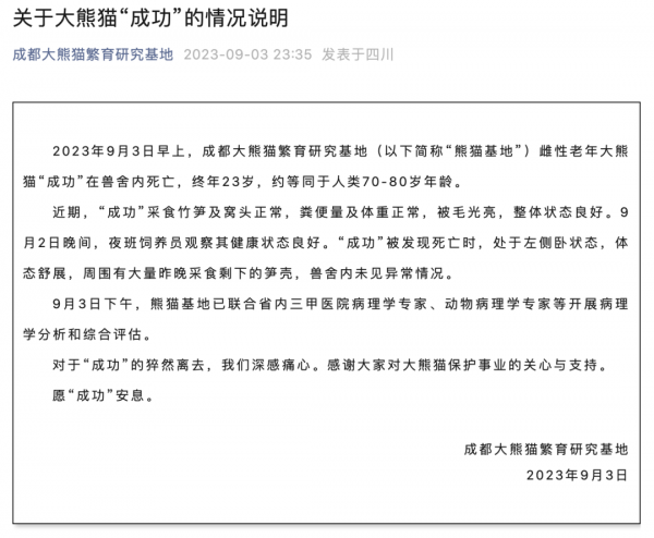 (原标题:大熊猫"成功"去世,网友伤心:"花花"没有妈妈了)