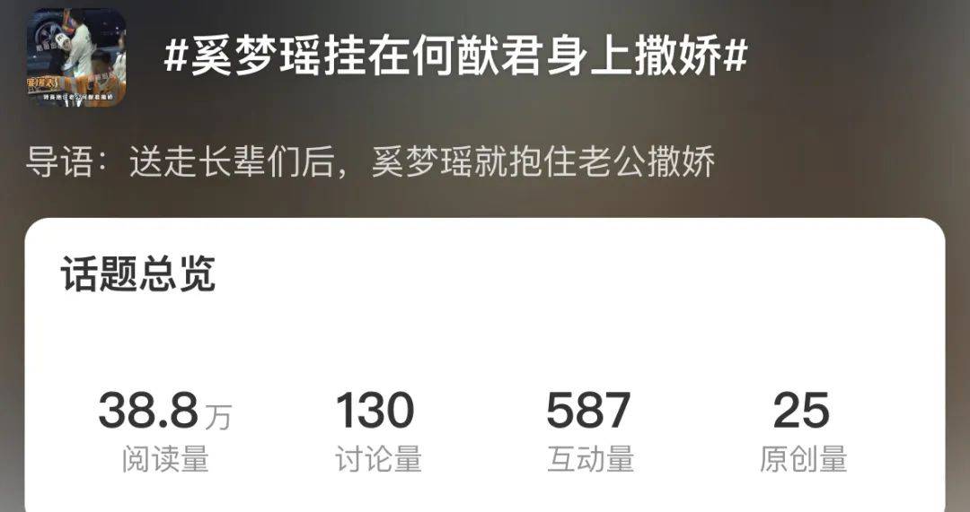 就在最近,奚梦瑶再度因为秀恩爱登上热搜。两人在聚会后送走长辈,随后奚梦瑶就开启撒娇模式,直接把她自己挂在何猷君的身上,从这个姿势就能看出奚梦瑶确实很喜欢何猷君,或是正是因为她十分乖巧,才能得到何猷君一家的认可吧。