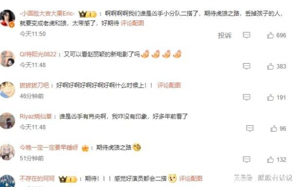 对此,网友纷纷评论:啊啊啊啊我们谁是凶手小分队二搭了,期待虎狼之路,丢掉孩子的人,就要变成老虎和狼,太带感了,好期待