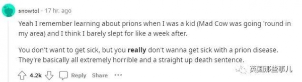 目前黄石公园官方还没有进行正式的调整,但看到僵尸鹿病在黄石公园传播的消息,还是让网友们小小地慌了一下:我记得我小时候家乡爆发过疯牛病,我就了解了朊病毒,当时吓得一周没睡好觉。你不会想生病,但更不会想患上朊病毒病的,这种病极其可怕,患病了就相当于被判了死刑。