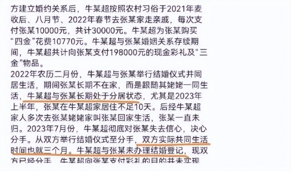 2021年,32岁男子与小三岁女子经媒人介绍相识确认恋爱关系,并在2022年春节举行结婚仪式。