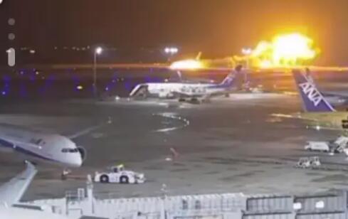日本东京羽田机场一架飞机起火 外媒称飞机疑似发生碰撞