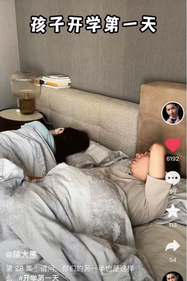 当天一大早,陈大愚还在床上熟睡,就被早起的闹钟吵醒。他和老婆都困得不行,互相喊话对方去送孩子,最终通过石头剪刀布的方式,陈大愚不得不担起送孩子的重任。