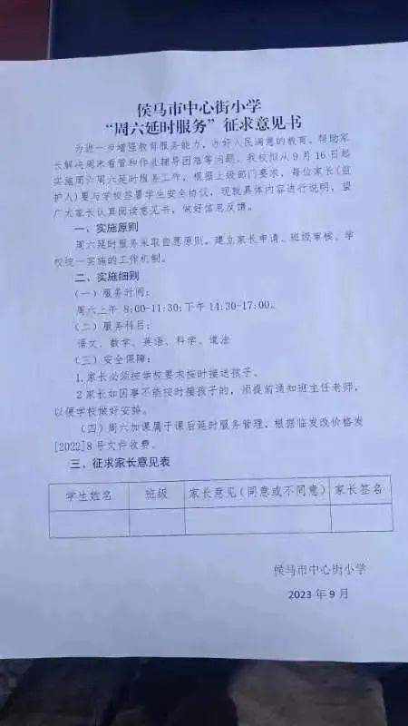 17日,有家长致电侯马市教育局,工作人员表示,"这个是自愿原则,只能和学校说一下,娃确实很辛苦。"