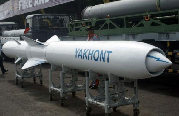 1983年,苏联设计出了P800红宝石反舰导弹,以此来取代落后的P270和P700,作为一种重量金,尺寸小,能够达到超音速巡航的优秀导弹,红宝石反舰导弹一经推出就得到了各国的广泛支持。可以说凭借着优秀的通用性、气动布局、火控系统以及维护保养能力,这款重250千克,射程600公里,最大飞行速度能达到3000公里每小时的超级巡航导弹,在不超过"不扩散导弹技术条约"限制的基础上,曾经可以说是一骑绝尘。