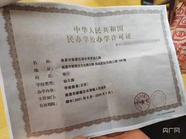 据查,南昌市新建区培尔米罗幼儿园成立于2022年1月20日,法定代表人为张某,经营范围包括3-6岁幼儿学前教育。