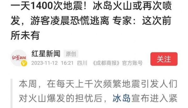 冰岛地震的频繁发生源于地下岩浆的不断冲击地壳的现象。在11月8日到9日的24个小时内,整个冰岛记录到了1400余次地震,其中大多数为小级别地震,但足以让当地居民感受到地面的不断晃动。事实上,在2021年2月到3月的短短20天里,冰岛就经历了惊人的5万多次地震,平均每天都有2500多次的地震发生。