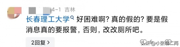 长春理工大学好困难啊,真的假的?要是假消息真的要报警,否则,改改厕所吧。