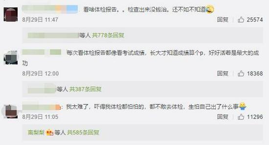 别说不敢看体检报告,医院体检我都不敢去。还有网友表示看体检报告真的需要来一首"勇气"