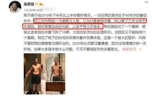 前两年,吴彦祖就差点因阑尾炎丧命。