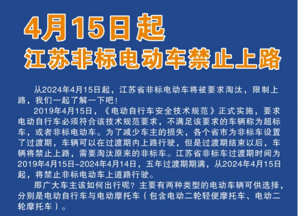 4月15日起,江苏省超标电动车"大限"将至,2类车能继续上路