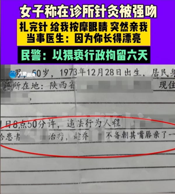 女子针灸遭强吻 医生:你长得漂亮