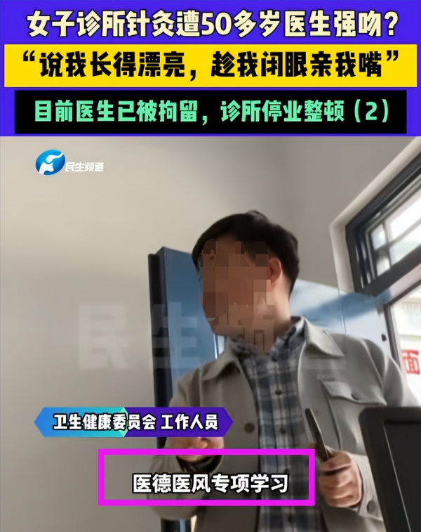 而在这个医生身上我们却完全看不到一点医德,当事人小娟,因为自己身体不适,所以就到一家中医诊所进行针灸治疗。然而没想到的是,在治疗的过程中,却遭到了诊所内这位50多岁医生的强吻。