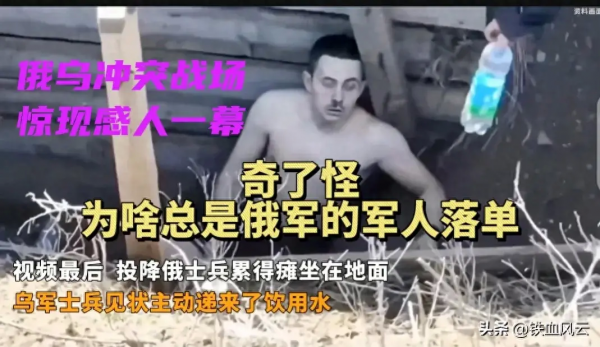 近日,俄乌冲突战场上出现了罕见的画面,这一幕令人震惊,也引发了广泛的关注。一名俄士兵竟然脱掉衣裤,爬向乌军投降,而据点的乌军士兵则主动递上了饮用水。