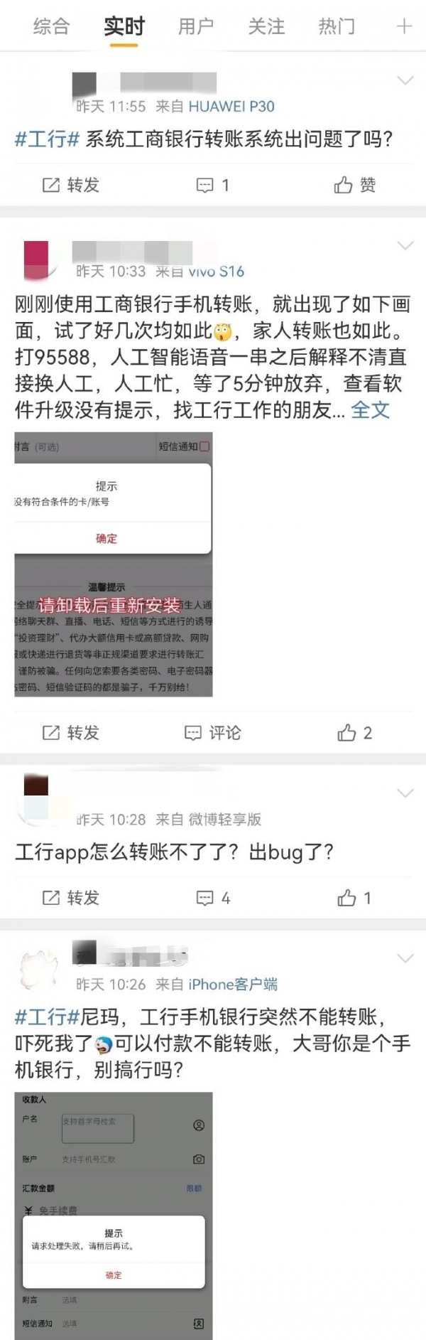 就在昨天上午,工行APP也"崩"了。转账功能用不了。