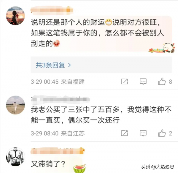 有网友表示:命里有时终须有,命里无时莫强求。中奖就已经是极小概率事件了, 每次中奖都有意外剧情。