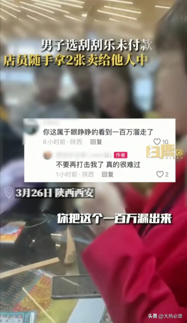 全陕西最难过的人!男子选刮刮乐未付款,店员拿2张卖他人中100万