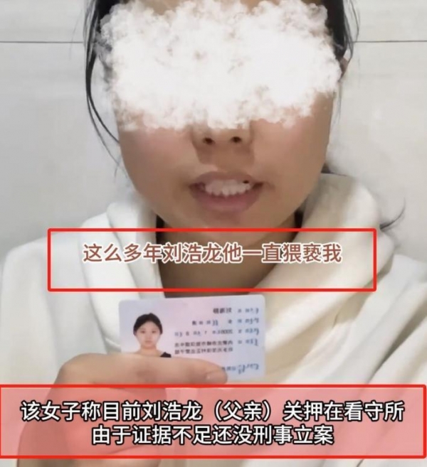 3月24日,一名自称叫刘海静年轻女子,手持身份证,通过某自媒体平台实名举报自己的父亲刘浩龙曾多次强奸、猥亵自己。刘海静称,她的父亲第一次强奸她,是在她十二三的时候,当时,她进行了极力反抗,但由于她的力气太小,终究没有逃脱父亲的魔掌。