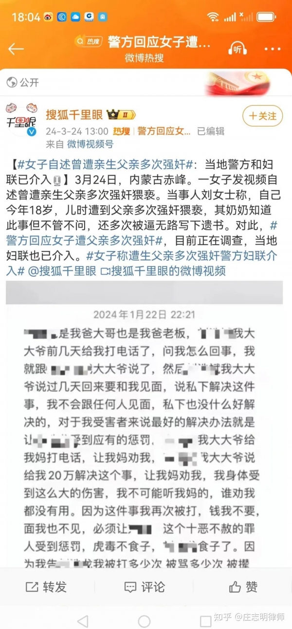 女子举报父亲对其强J猥亵后续:其父亲已被拘捕