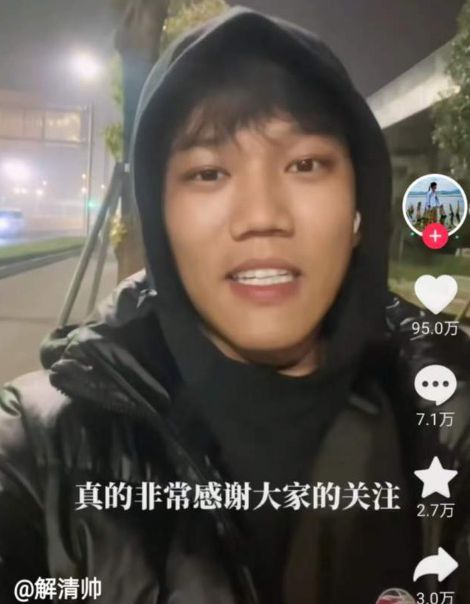 之后,"打工人"解清帅秒变"富二代",其社交账号也暴涨了百万粉丝。