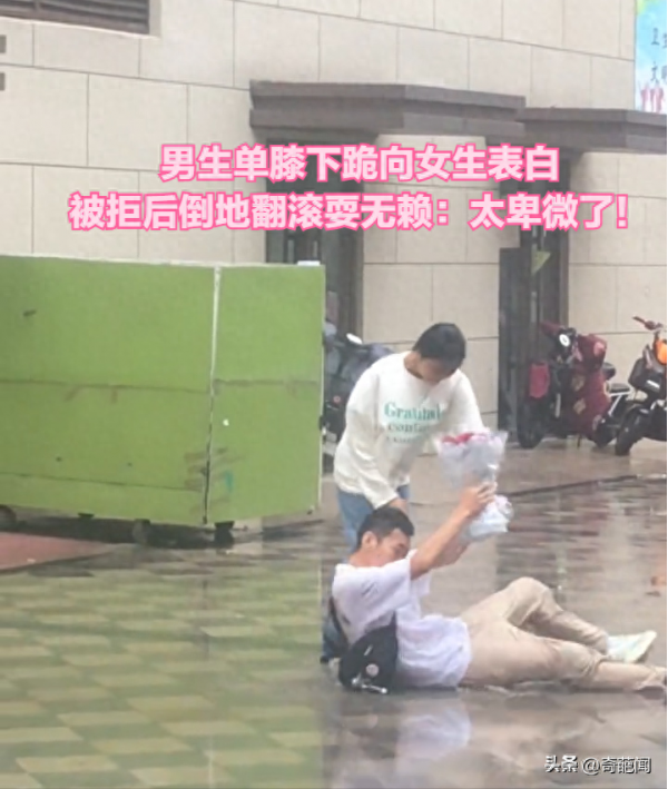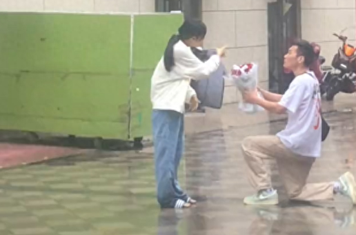山东有网友就在某社交平台上爆料一段令人啼笑皆非的表白视频引发网友关注与热议,画面中某街头男生满怀信心地单膝下跪,手捧鲜花向女生表白,期待着她接受自己的爱意,可惜的是这一举动未让女生感动,