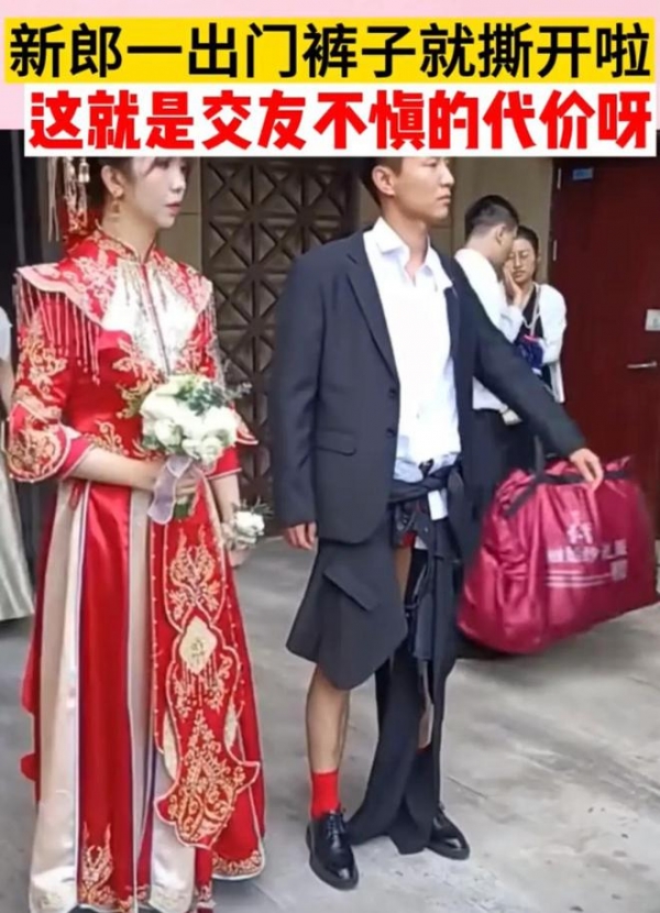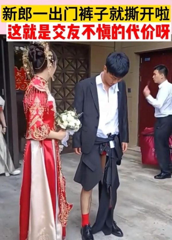 近日,一段新婚当天,新郎一出门就被婚闹的人把他裤子撕了的视频引发关注,网友说,这玩笑也开的太过头了吧。