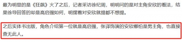 --原来《狂飙》实体书的作者正是剧集导演徐纪周,一直有传闻称他和张译本人之间存在矛盾,以至于剧组内部分裂站队,《狂飙》宣传期双方就毫无互动,甚至多次互相内涵,《狂飙》实体书角色介绍第一位竟然是高启强,整部书连安欣的剧照都没有。