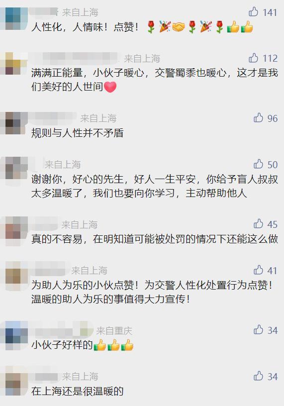 不少网友都被感动了:为助人为乐的小伙点赞,也为交警的人性化处置点赞。