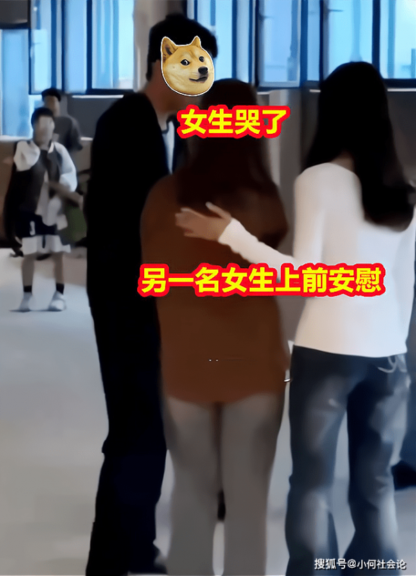 其中一名女生似乎接受不了这样的现实,现场忍不住流下眼泪,一旁的女生见此赶紧上前安慰。