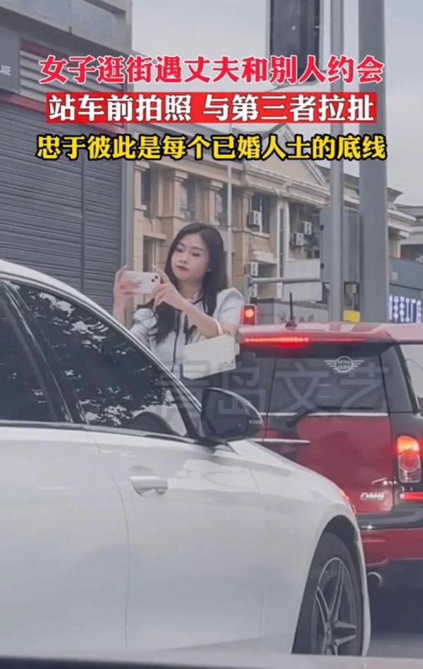 视频中,一名年轻貌美,打扮时尚的女子走在街上时,看到老公的车子停在路边,车子的副驾驶位上坐着一名比自己还年轻漂亮的女子。只见女子正在喂老公吃东西,两人动作亲密,不像是一般的朋友关系。