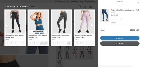 在用户加购之后,Gymshark 还会自动推荐其他款式来丰富订单,以提高整体客单价。